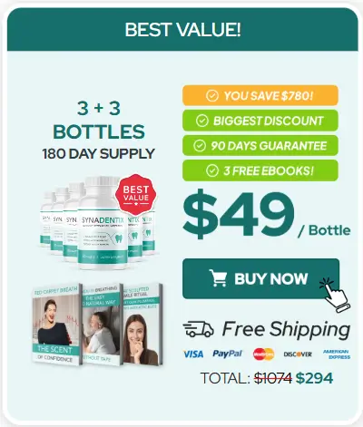 Synadentix is designed to be used consistently over time. For best results, many users choose a 3- or 6-month supply, as this allows enough time to support oral balance and long-term dental health. These larger packages also come with the best discounts and free bonuses, when available. Keep in mind that these offers are often limited and not available year-round.